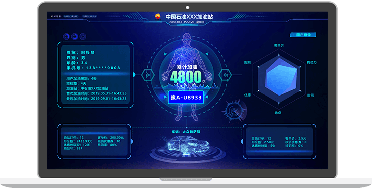 依托数字化项目优势,提供“互联网+加油场景”一站式整合运营方案 聚合便捷移动支付体系、智能零管运营系统、会员数据精准营销、联合异业资源共享等服务项目 结合智能终端、云计算、大数据等信息化优势,建设智慧加油站